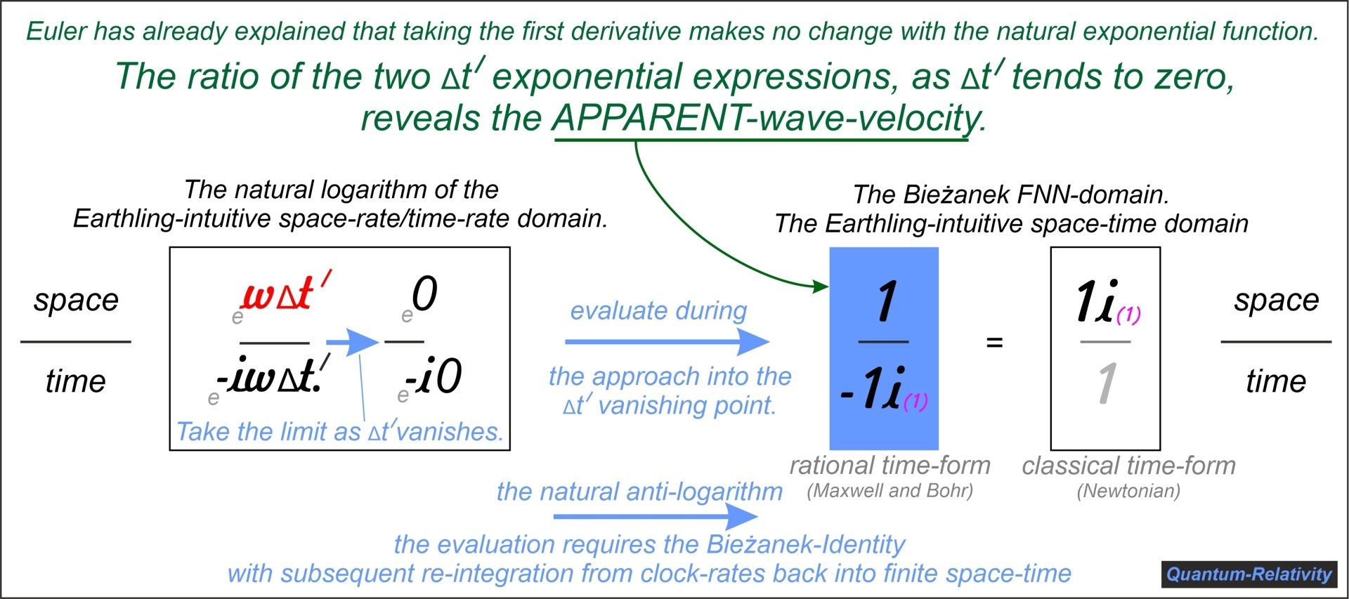 The proper relativistic unit for what we presently call time is the imaginary historic depth in i-seconds. The apparent wave-velocity in Quantum-Relativity is shown to be 1.i0/-1i1. The square of the "apparent-wave-velocity", (1.i0/-1i1)^2 , being quite naturally inverse one, 1.i2 (-1). This is a Newtonian gravitational mechanics consistent velocity and of course, there were only two choices for the nature of time.