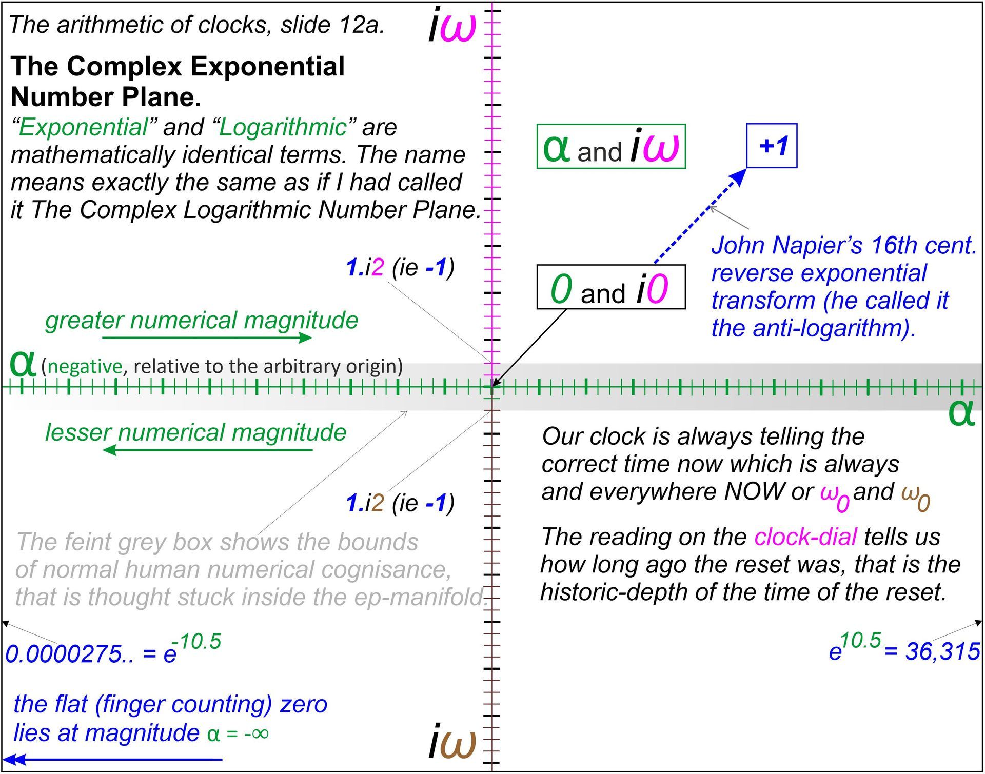 In a nutshell, we can declare that with an exponentially based Universe such as we live in, absurd "flat-earth-arithmetic" (finger-counting-arithmetic) is not only highly confusing but definitely imposes many utterly debilitating intellectual limitations upon any Natural Philosopher or scientist. Please read and ponder upon the complex exponential number plane, it is a tough learning curve for anybody brought up on a never ending diet of the absurd, unnatural, abstract and artificial device called the (flat) complex numerical plane, but the conversion is well worth the effort.