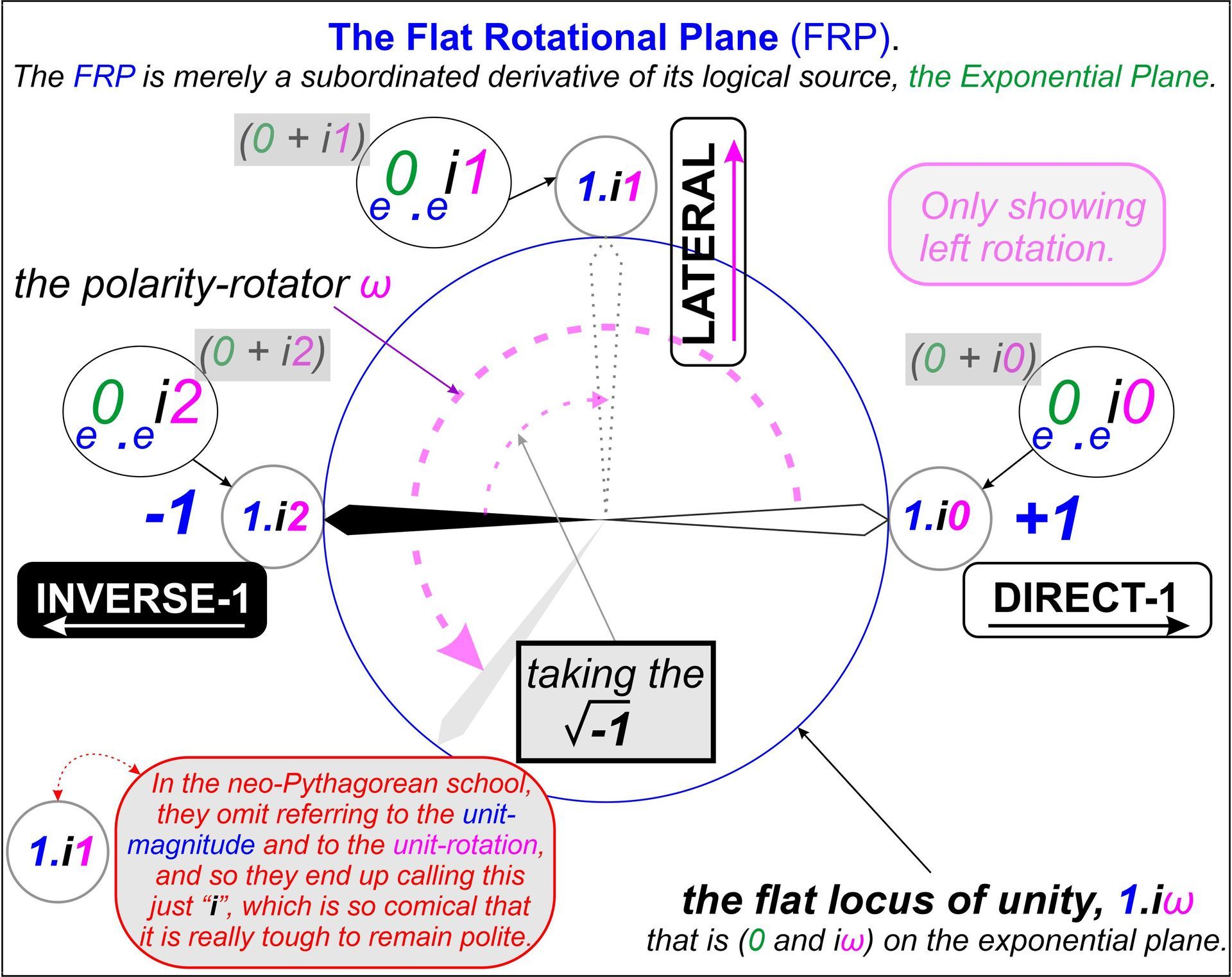 Inside the red box: In the neo-Pythagorean school, they omit referring to the unit-magnitude and to the unit-rotation, and so they end up calling this just “i”, which is so comical that it is really tough to remain polite.
